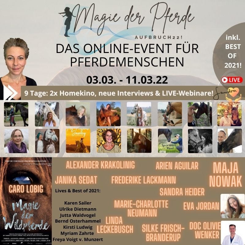 Mein Pferd hat meinem Leben eine völlig neue Richtung verliehen. Ihm habe ich "Magie der Pferde - natürlich verbunden" aus 2021 zu verdanken. Dieser zweite Kongress ist ein weiteres Herzenswerk von mir, um noch viel mehr Menschen erreichen zu können! Mein Antrieb: Ich möchte in einer Welt leben, in der Spritualität im Stall genauso normal ist, wie das Amen in der Kirche!"