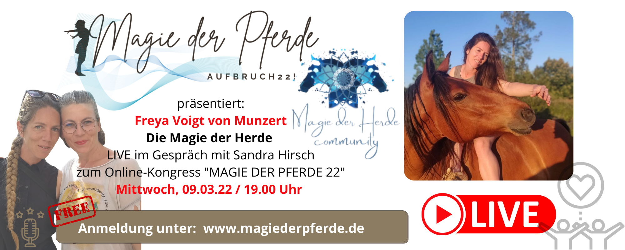 Mit Freya Voigt von Munzert tauchst Du ein in eine Welt, nach der sich viele sehnen: Freiheit und Verbundenheit mit einer Herde in einem Umfeld, in dem sogar die Wildtiere Schutz finden. Freyas Blick auf die Pferde und den Umgang mit Pferden öffnete im vergangenen Jahr bereits viele die Augen und die Herzen!