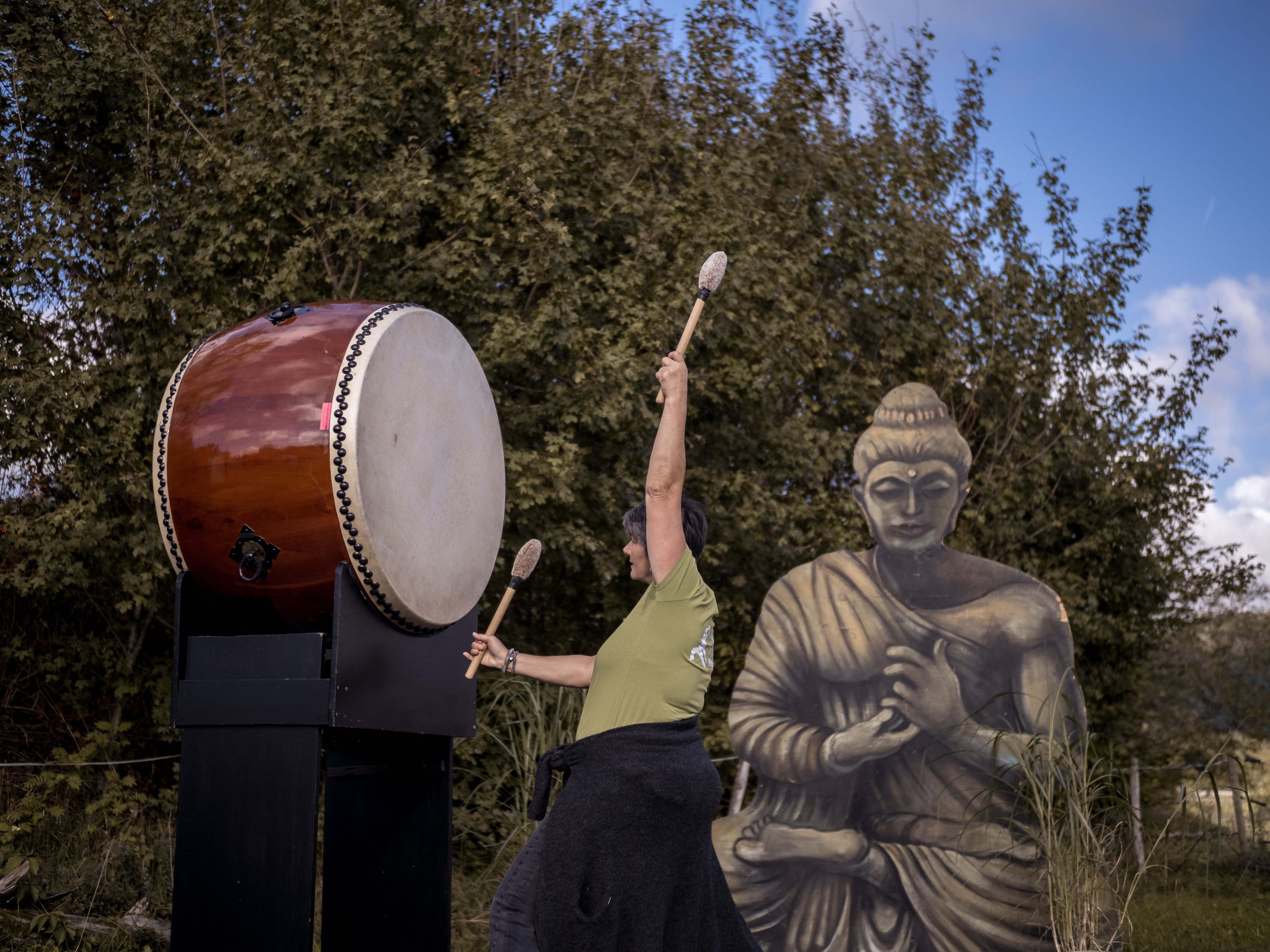 15:15-16:15 Uhr: Stephanie & Guido - Taiko-Trommeln mit 9 Teilnehmern (Workshop/große Jurte oder bei gutem Wetter auf der Festivalwiese)